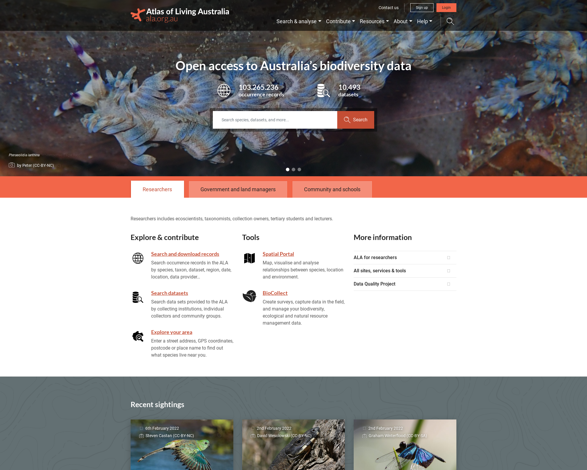 Australia's biodiversity portal. Its Free and open source IT biodiversity software is used by all our community
