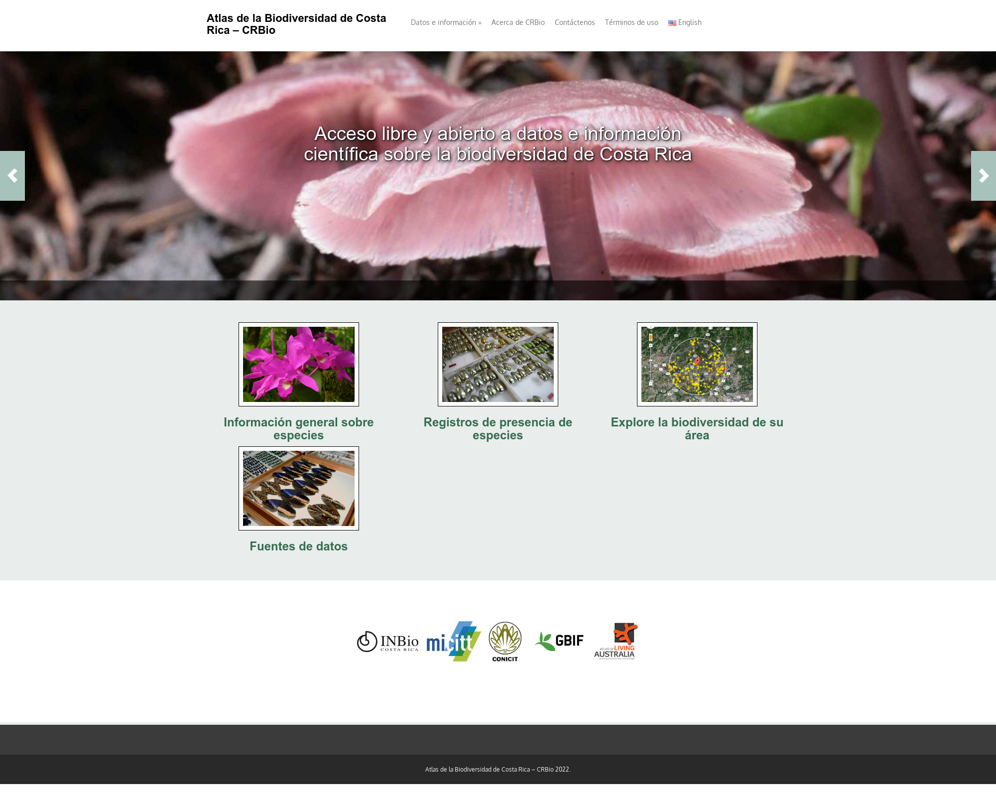 The Atlas of Living Costa Rica was launched in 2006 aiming at providing integrated, free, and open access to data and information about the Costa Rican biodiversity in order to support science, education, and biodiversity conservation. In 2016, it was rebuild with software components developed by the Atlas of Living Australia (ALA). The Atlas is managed by the Biodiversity Informatics Research Center (CRBio) and the National Biodiversity Institute (INBio).